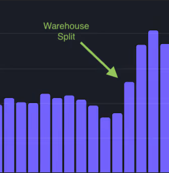 As with any problem, we began by examining the data. Our warehouse spent most of its time running complex analysis queries to find cost-saving opportunities. While some of these queries were small, others were enormous. This meant that during peak times, other queries were queued. Using Snowflake’s Most expensive queries dashboard (If you’d like to see for yourself, Go to Admin → Cost Management → Account Overview and scroll down), we pinpointed which queries took the longest. We mapped them out and embarked on our first improvement: splitting the warehouses.